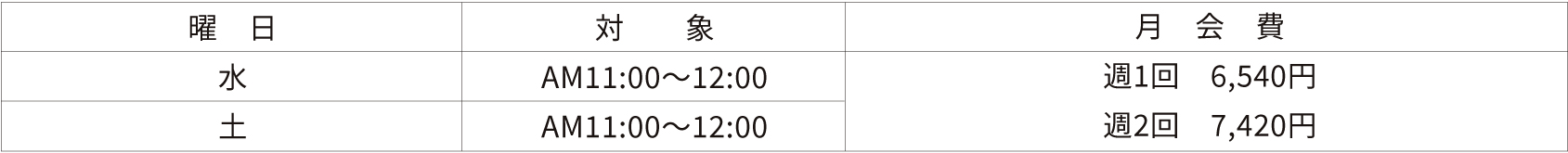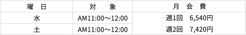 ※週1回コースでお休みした場合は他の曜日に振替出来ます。月4回受講出来ます。