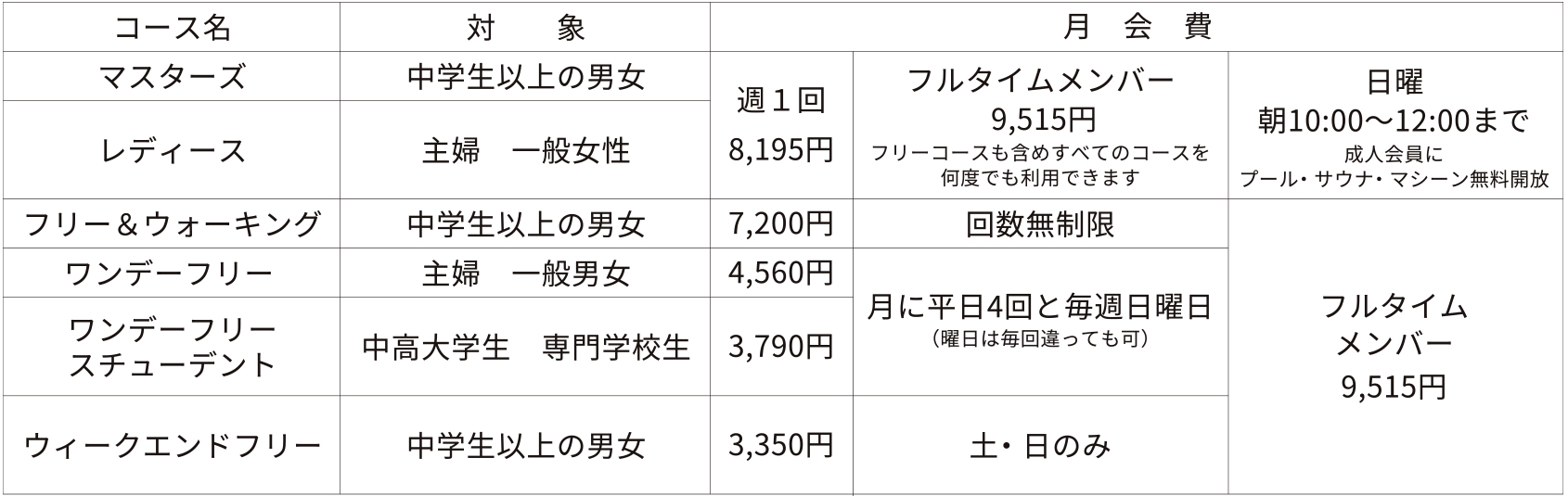 年会費や冬季暖房費、コース変更費などは必要ありません。